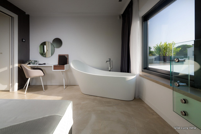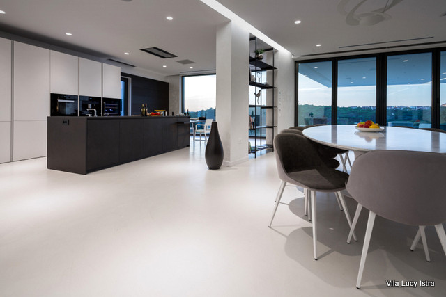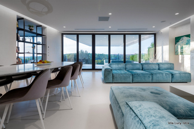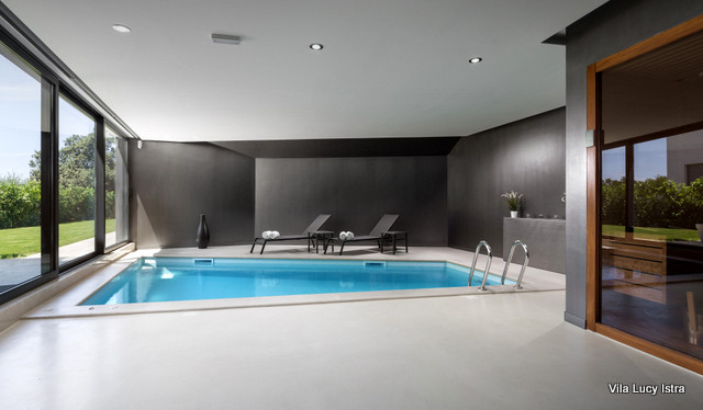 Teško se može sakriti oduševljenje ovom modernom i arhitektonski potpuno drugačijom vilom, od očekivanog, smještenoj na našoj obali. Gotovo filmski prizori pružaju se u okruženju bazena vile Lucy, na vanjskoj terasi koja je smještena ispod izvučenog volumena građevine. U prizemlju vile nalazi se prostrana i potpuno opremljena kuhinja sa smočnicom, prozračna blagovaonica, elegantno uređeni dnevni boravak i odvojeni toalet pri čemu natkrivena i nenatkrivena terasa upotpunjuju ponudu ovog dijela vile. Prvi kat raspolaže s dvije spavaće sobe s dvoležajnim krevetima, jednom spavaonicom s dva jednoležajna kreveta, tri prostrane kupaonice, odvojenim toaletom, spremištem i terasom. Na drugom katu vile Lucy na raspolaganju su također tri spavaće sobe, natkrivena i nenatkrivena terasa te tri vrhunski uređene kupaonice. Bogati sadržaj moderne vile Lucy uključuje vinoteku, garderobu, finsku saunu i aromatiziranu parnu kupelj, predivan unutranji bazen (17m2) opremljen protustrujnim plivanjem i masažnim mlaznicama te 2 odvojena toaleta. Uz prostore wellnessa nalazi se i gym/fitness centar. Da li može bolje?